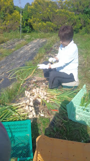 抜いて、根を切り、皮を剥いて吊るして乾燥です。